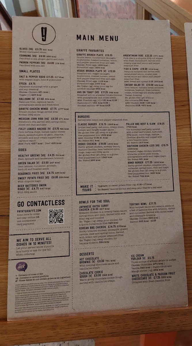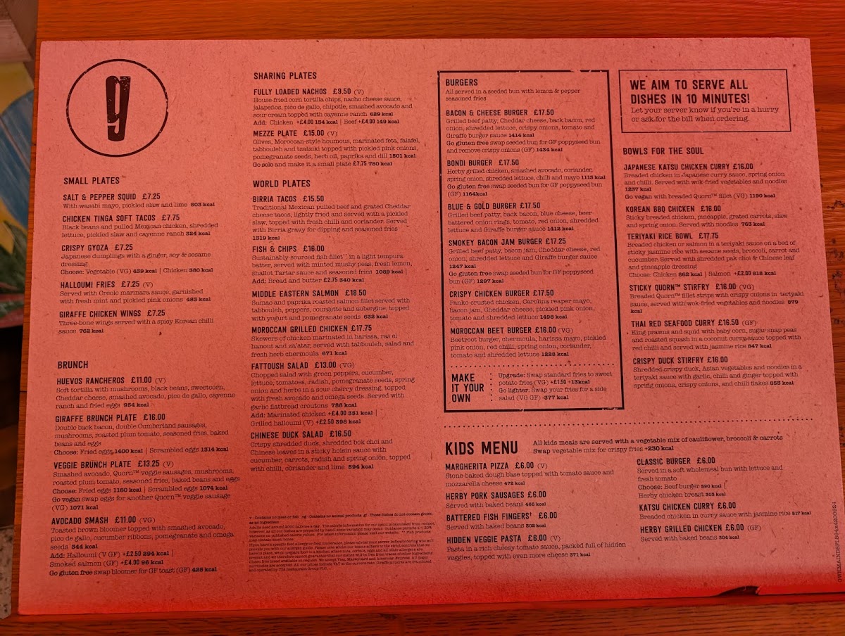Giraffe - Gatwick Airport South Menu